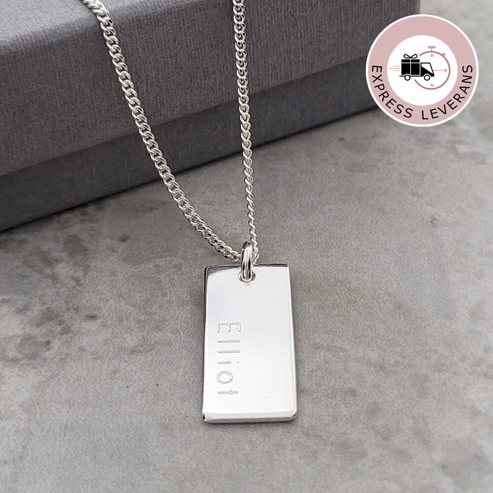 Vårt populära barnsmycke som dophalsband till pojkar är denna lilla bricka. Vi tycker det är så kul att även pojkarna får ett smycke i doppresent. På framsidan ingår ett namn Baksidan kan också graveras , baksidan blir alltid med stilen block. Önskar du djupgravyr och inte har så bråttom hittar du den här